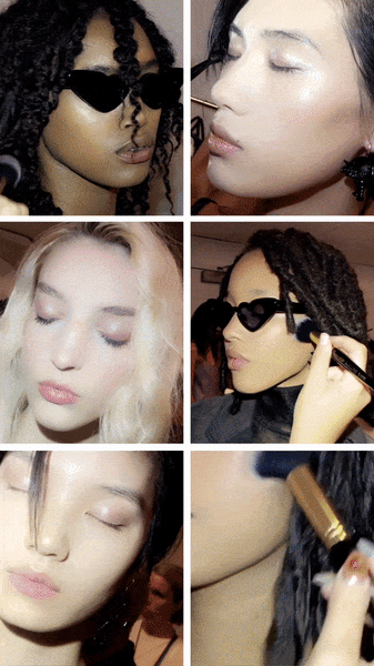 Join Pat on an enchanting voyage into the life aquatic, with makeup that mirrors the captivating allure of underwater scenery. The focus is on reflecting colours and textures that accentuate the ravishing beauty of the sea. The skin is flawlessly perfected, exuding a radiant luminosity. A variety of looks were featured, with some models celebrating a barely-there feel, adorned with gentle hints of taupe around the eyes. Other looks embodied a soft, dreamy bohemian vibe, with elegantly blended pastel paints around the eyes. The lips are natural and beautifully glossed for a flawless finish.
